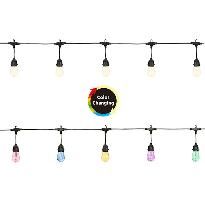 Set the perfect mood year-round with our 10-count 8-function color changing Edison bulb string light set! The colorful glow adds fun and excitement to any indoor space. With a 14-foot black wire, these lights are easily hung around a room and the safety fuse plug and durable coordinating wire will keep it shining for seasons to come.