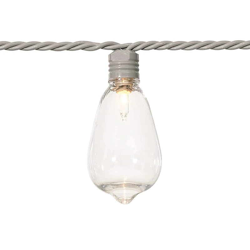 Set the perfect mood year-round with our 100-count clear UL Edison string light set! The warm glow adds fun and excitement to any indoor space. With a 58-foot taupe wire, these lights are easily hung around a room and the safety fuse plug and durable coordinating wire will keep it shining for seasons to come.