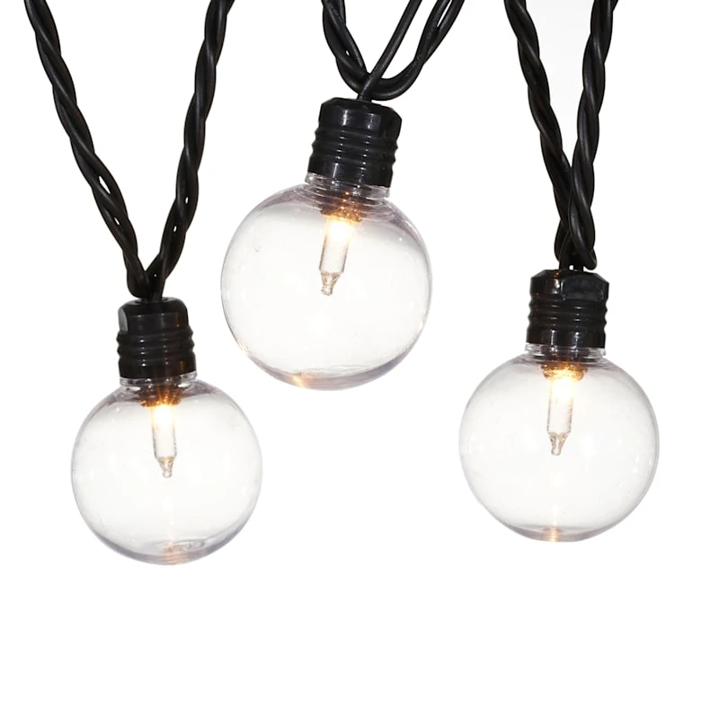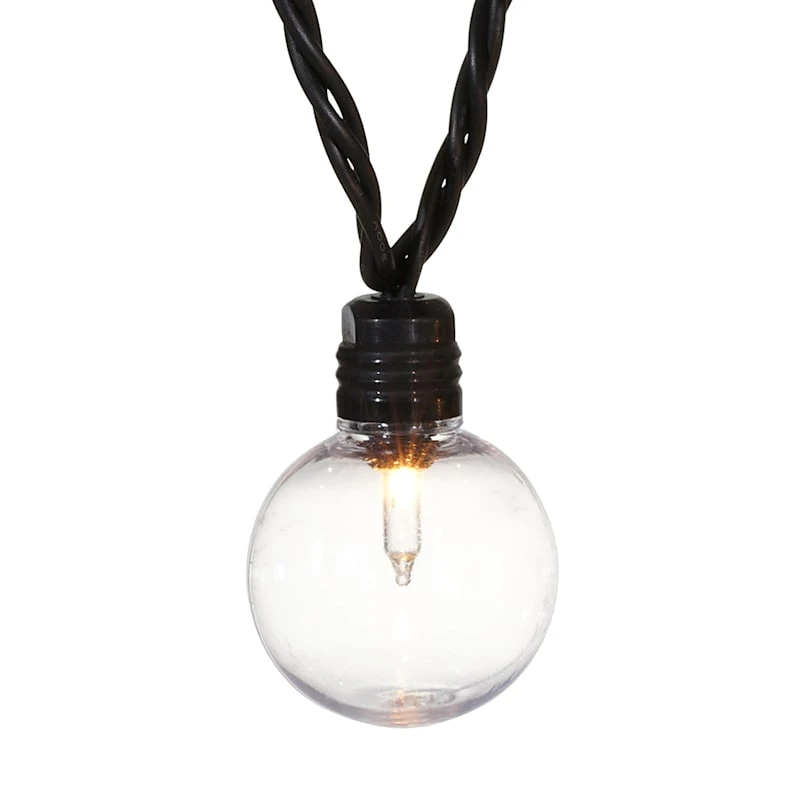 Set the perfect mood year-round with our 100-count clear UL G40 LED clear globe string light set! The warm glow adds fun and excitement to any indoor space. With a 58-foot black wire, these lights are easily hung around a room and the safety fuse plug and durable coordinating wire will keep it shining for seasons to come.