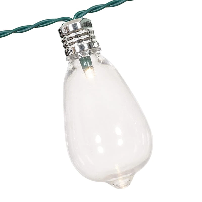 Set the perfect mood year-round with our 15-count clear LED Edison bulb string light set! The warm glow adds fun and excitement to any indoor space. With a 14.5-foot green wire, these lights are easily hung around a room and the safety fuse plug and durable coordinating wire will keep it shining for seasons to come.