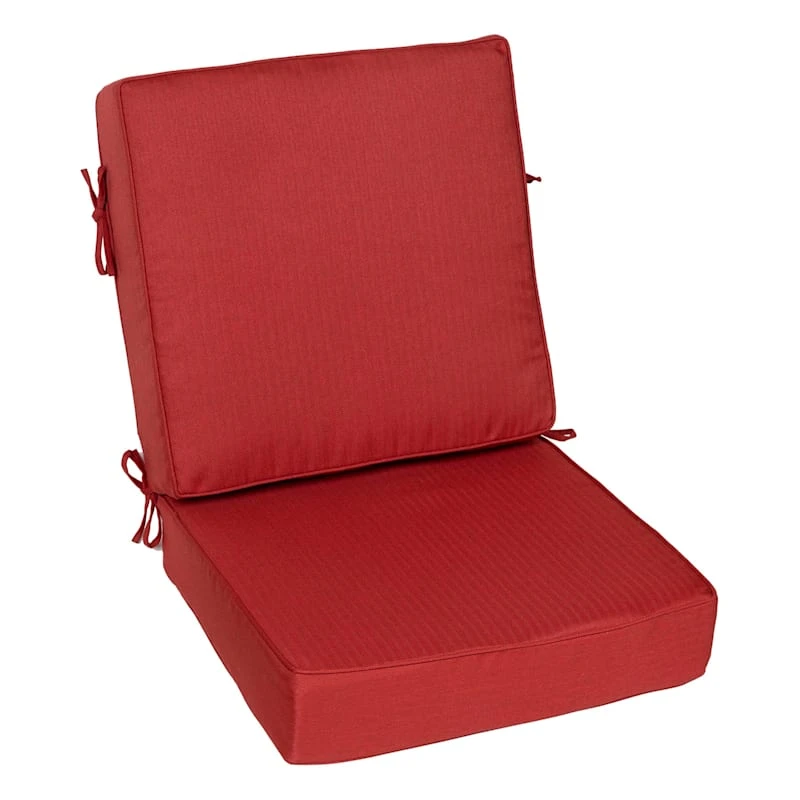 Our outdoor cushions are durable and ready to stand up to the elements. Polyester construction and all-weather capability make this 2-Piece Tristin Cherry Red Outdoor Gusseted Deep Seat Cushion Set a must-have for outdoor entertaining. Create a stunning patio, porch or deck that will be the talk of the neighborhood. Check our overall selection for a variety of shapes, sizes, patterns and colors to fit the personality of your patio.