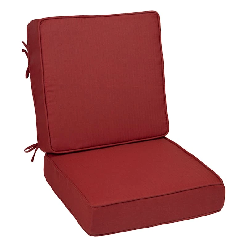 Make moments enjoying the great outdoors even more pleasing with our 2-Piece Tristin Acorn red premium outdoor gusseted deep seat cushion, perfect for boosting the comfort and style of your favorite outdoor spaces. The thick back cushion features all-around piping to give it a little personality and look its best amongst the elements.