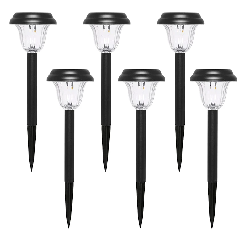 Our 6-pack decorative outdoor Melville black metal solar pathway light set shines softly for mood lighting in your garden, on the patio or balcony. Each traditional 5-Lumen outdoor lantern light comes with a stake, which can insert into patio pots, the garden and around the lawn. Lamps are made of black metal and plastic and are very durable, ready to stand up to the elements. Decorative lanterns can be placed just about anywhere, decorating your environment when you’re entertaining, camping, fishing, and so much more.