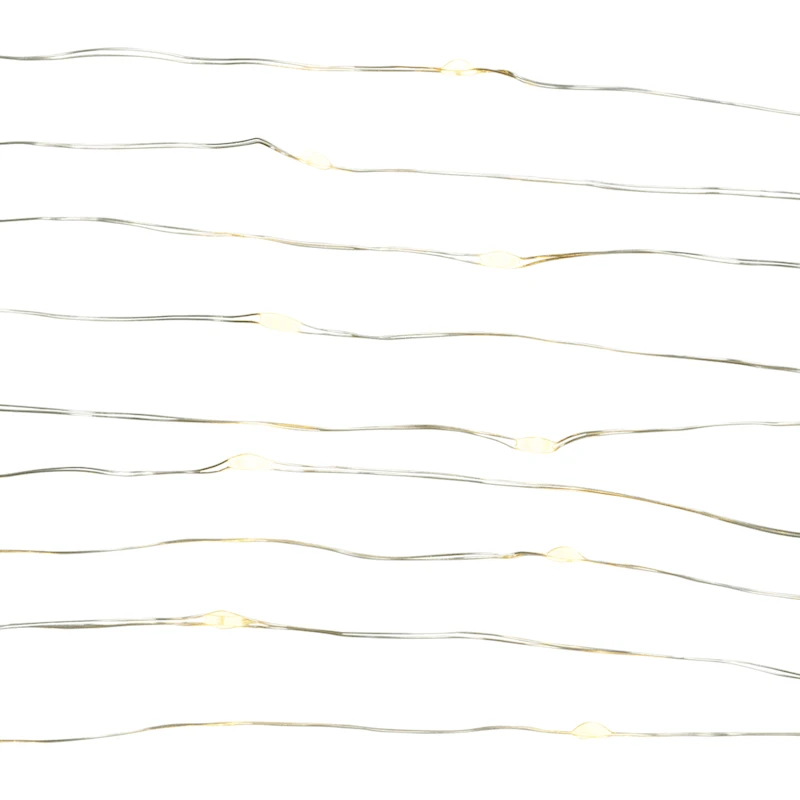 Delicate and bright, these warm white and silver fairy string lights resemble fireflies and twinkling stars in the night sky. High-quality battery operated micro dot lights provide steady ambient illumination. Every micro light remains cool to the touch, minimizing the risks of burns. These lights are crafted from very thin silver wires that can be effortlessly bent and shaped however you like.