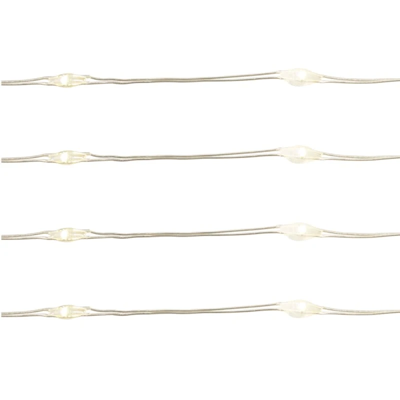 Set the perfect mood year-round with our 80-count mini LED battery operated string light set! The warm glow adds fun and excitement to any indoor/outdoor space. With a 26.5-foot clear/silver wire, these micro dot lights are easily hung around a room and the safety fuse plug and durable coordinating wire will keep it shining for seasons to come.