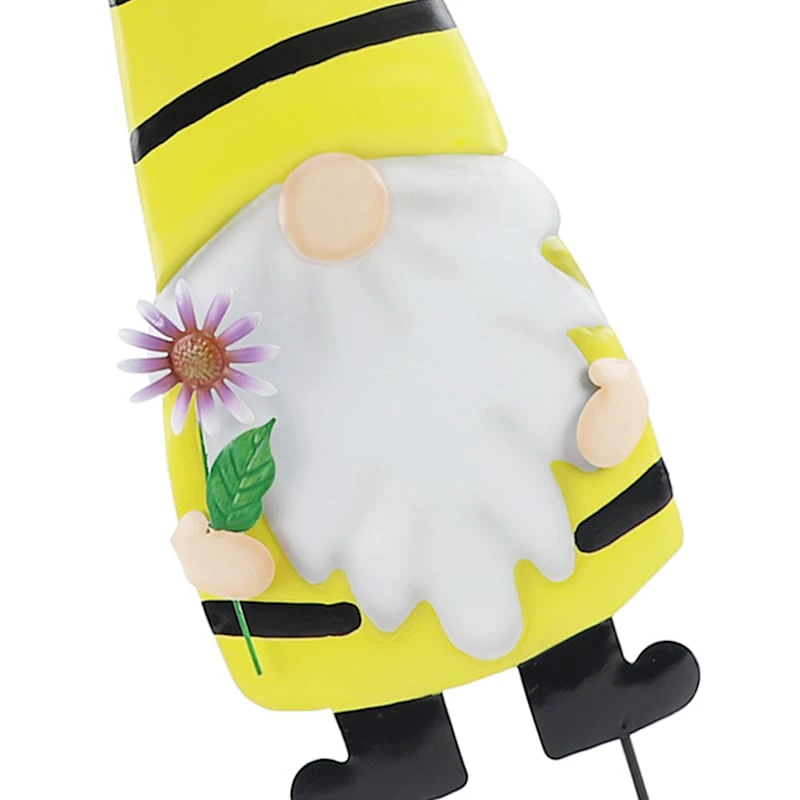 Featuring a yellow and black bee gnome motif with beard and flower detailing, this garden stake is the perfect decor to beautify any garden. Crafted of bright, colorful metal, this fun little guy will bring joy for years to come.