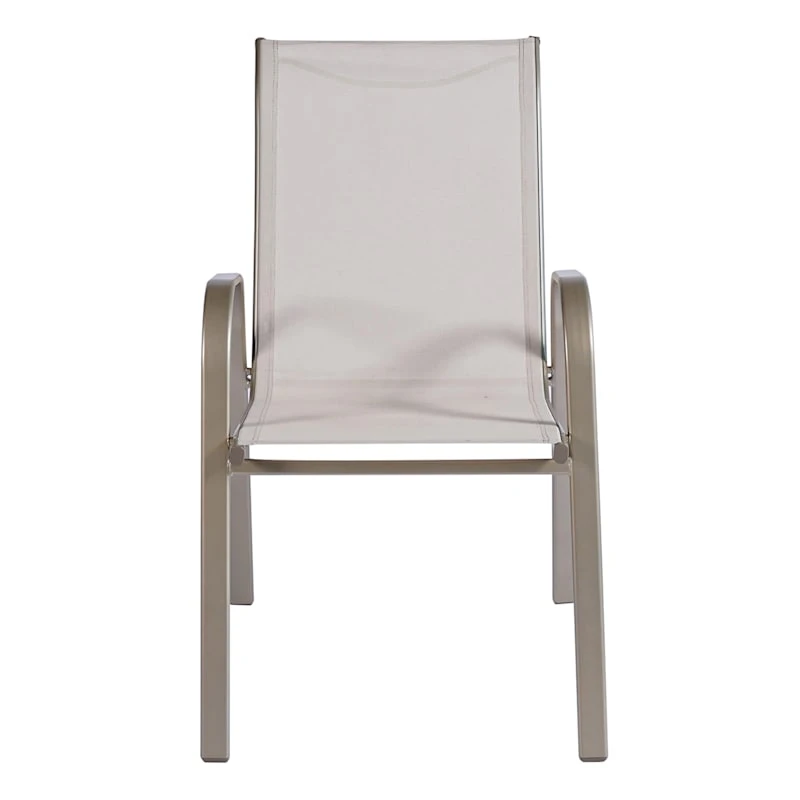 Escape the indoors and get outdoors with our stackable beige Sling patio chair. Buy in multiples and be sure to have enough outdoor seating for family and friends. This outdoor metal dining chair features a simple streamlined look with a metal frame and a comfortable mesh fabric that’s breathable. These stacking chairs will last even longer if protected from the elements. Pair with any patio table or garden stool and enjoy the great outdoors to the fullest.