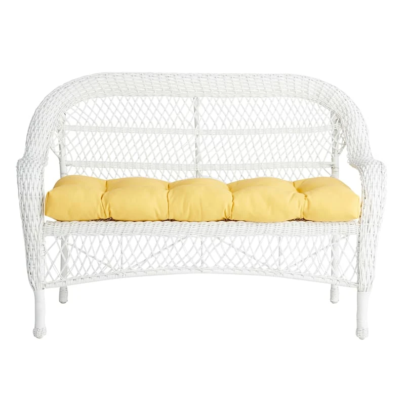 Make moments enjoying the great outdoors even more pleasing with our butter yellow canvas outdoor wicker settee cushion, perfect for boosting the comfort and style of your favorite outdoor spaces. The settee cushion features all-around piping to give it a little personality and look its best amongst the elements.