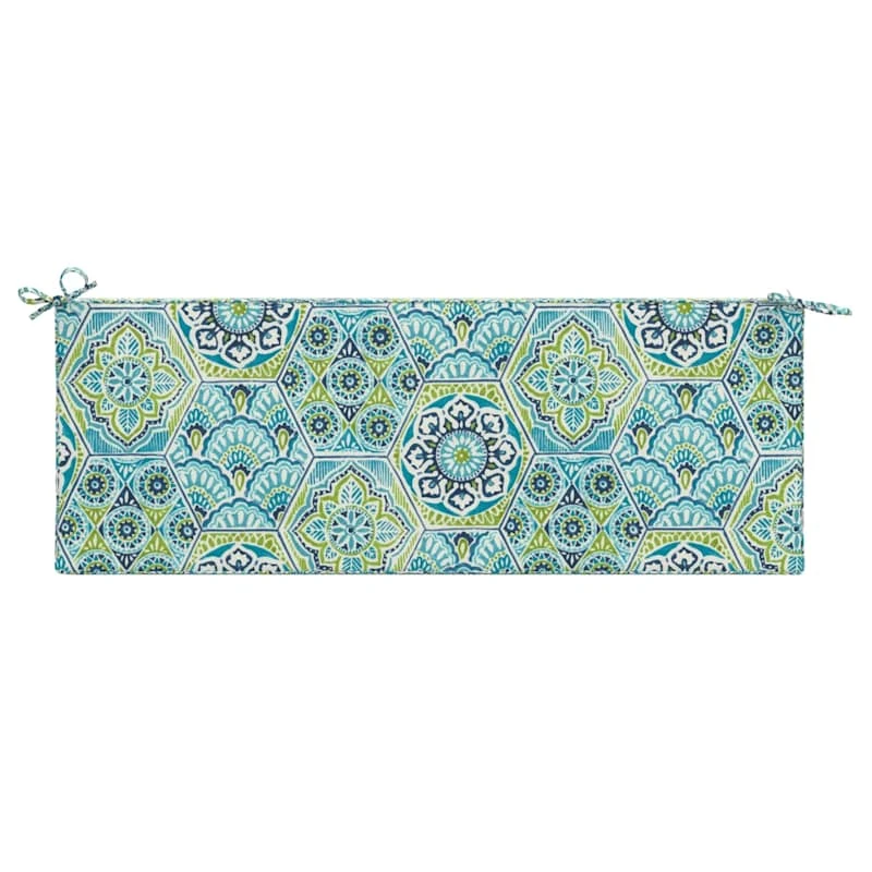 Our outdoor cushions are durable and ready to stand up to the elements. Polyester construction and all-weather capability make this Calista teal gusseted outdoor bench cushion is a must-have for outdoor entertaining. With the fashion-forward design, you can create a stunning patio, porch or deck that will be the talk of the neighborhood. Check our overall selection for a variety of shapes, sizes, patterns and colors to fit the personality of your patio.