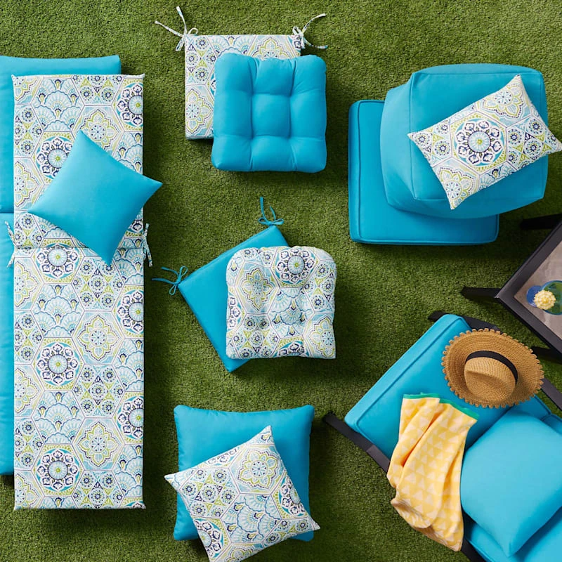 Our outdoor pillows are durable and ready to stand up to the elements. Polyester construction and all-weather capability make this 14×20 Calista teal outdoor lumbar throw pillow is a must-have for outdoor entertaining. With the fashion-forward color, you can create a stunning patio, porch or deck that will be the talk of the neighborhood. Check our overall selection for a variety of shapes, sizes, patterns and colors to fit the personality of your patio.
