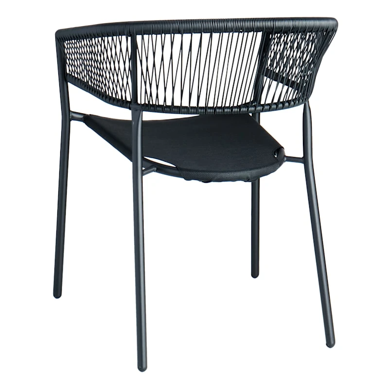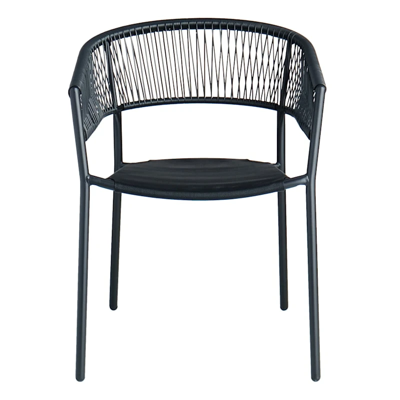 Our Brody curved back black outdoor wicker chair is constructed of durable and weather-resistant painted metal and all-weather wicker for outdoor use, comfort and durability. The contemporary synthetic wicker and painted metal is excellent outdoors, with no maintenance required, so you can enjoy it for years to come.