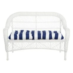 Providence Navy Blue Awning Striped Outdoor Wicker Settee Cushion