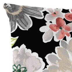 Tamani Raven Black Floral Lumbar Outdoor Throw Pillow, 14×20
