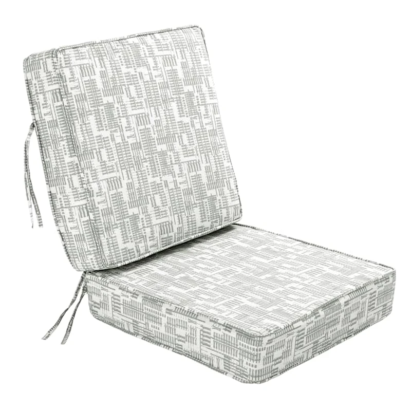 Found & Fable is a new collection that lets you explore what’s right around the corner. Choose your own adventure every day. Savor it all and say yes to what comes next—exclusively At Home. Our outdoor cushions are durable and ready to stand up to the elements. Polyester construction and all-weather capability make this gusseted 2-pc. outdoor deep seat cushion a must-have for outdoor entertaining. With the fashion-forward grey ah hashed design, you can create a stunning patio, porch or deck that will be the talk of the neighborhood. Check our overall selection for a variety of shapes, sizes, patterns and colors to fit the personality of your patio.