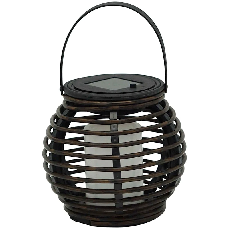 Found & Fable LED Candle Black Faux Rattan Solar Ball Lantern, 9"