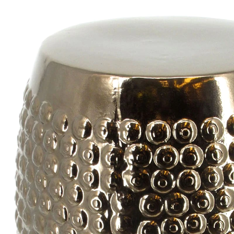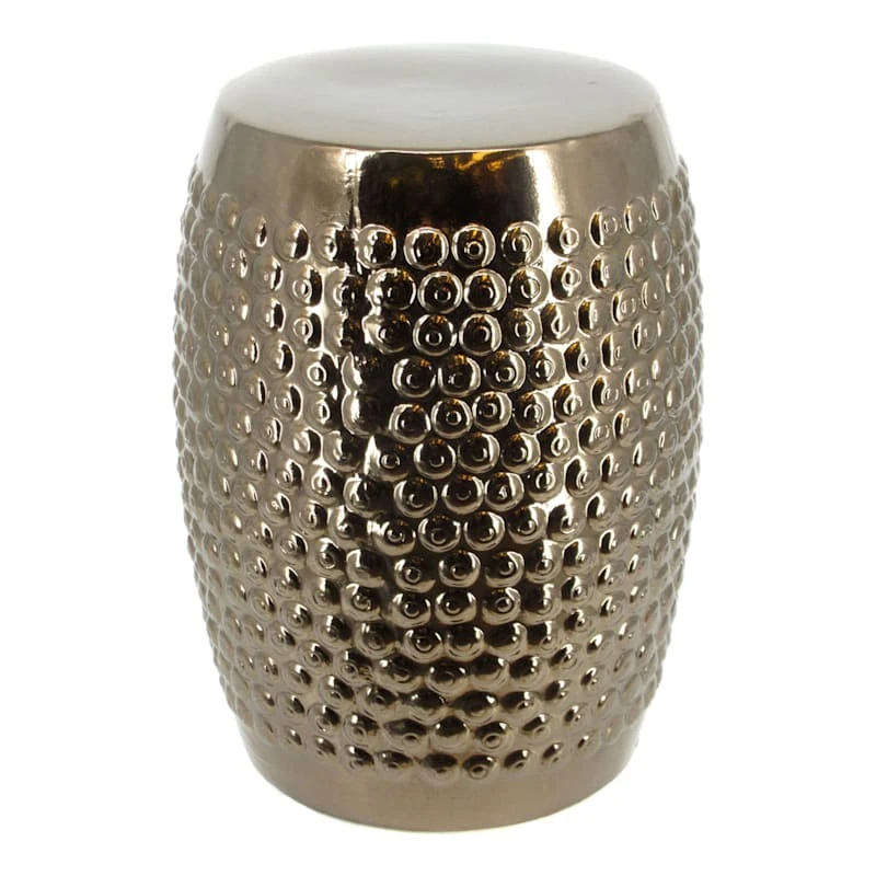 Found & Fable is a new collection that lets you explore what’s right around the corner. Choose your own adventure every day. Savor it all and say yes to what comes next—exclusively At Home. Highlight your patio decor and gardening with our simple yet stylish hobnail metallic ceramic garden stool. More than just a spot to set a beautiful plant or your beverage, this wonderful patina finish stand offers a fun contemporary appearance with its tall barrel profile and decorated cutout surface. Designed to live indoors or out, it’s ready, waiting and at your service as a tabletop, footstool or an extra seat!