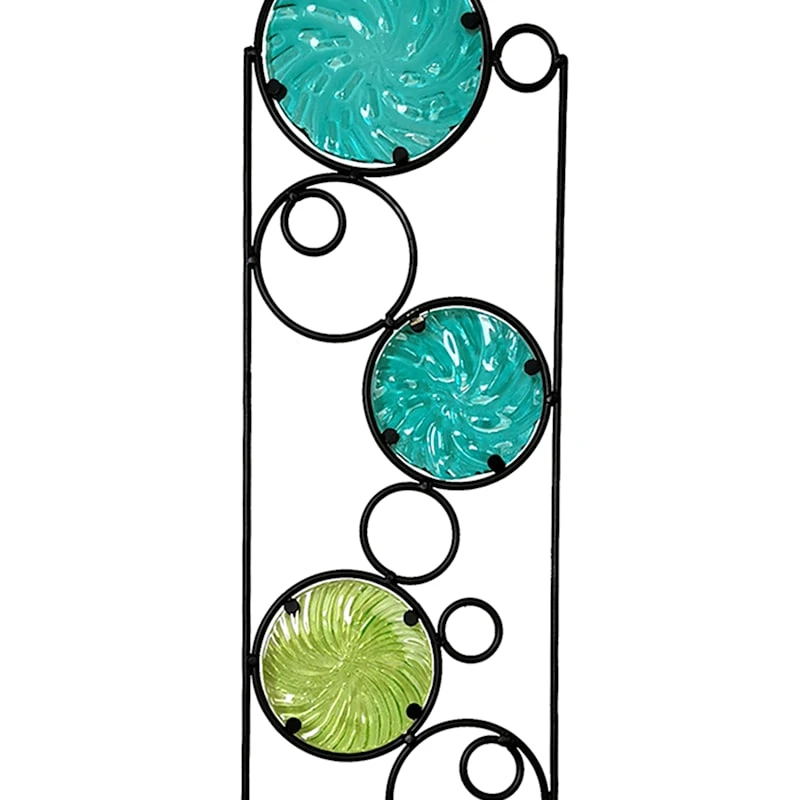 Add a pinch of fun to your garden with our colorful metal 40in. glass circle outdoor garden stake. Created with love, this detailed metal piece features a double pointed base with a detailed blue and green stained glass design. Everyone will enjoy the charming subject matter tucked into your prolific garden. Made of rust-resistant metal, this garden stake is designed to bring a natural touch to your landscaping.