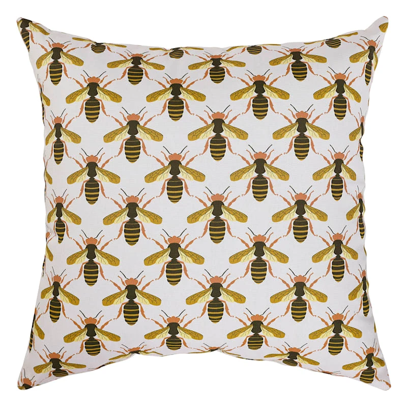 Inject a burst of charm into your outdoor oasis with our 16in. Honeybloom Bee Trellis Outdoor Throw Pillow. Crafted of weather-resistant polyester, this yellow multi pillow is designed to withstand the elements while adding a touch of personality to your patio or garden. The pillow features a delightful bee trellis pattern that is as eye-catching as it is inviting.