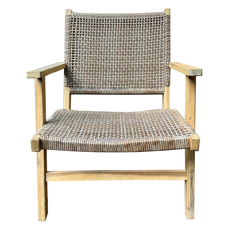 Modern farmhouse meets At Home prices in Honeybloom, our exclusive new brand that celebrates life lived together. Create a relaxing oasis in your backyard where you can just hang and chill. Our Delia outdoor lounge armchair is made of natural wood and wicker woven in a neutral summer shade perfect for your outdoor space. An interesting modern design, this lounger will be welcome in any outdoor space.
