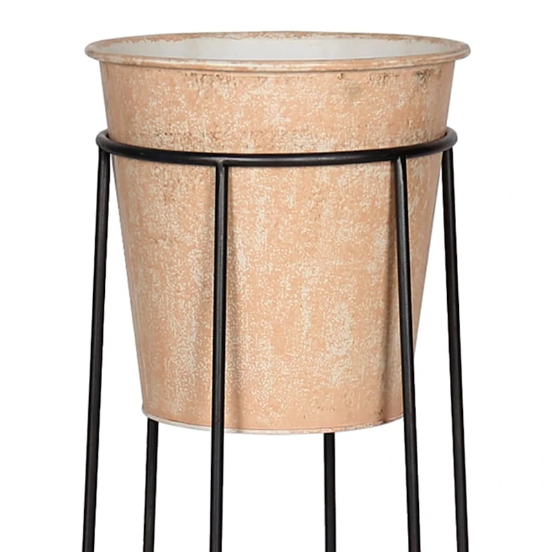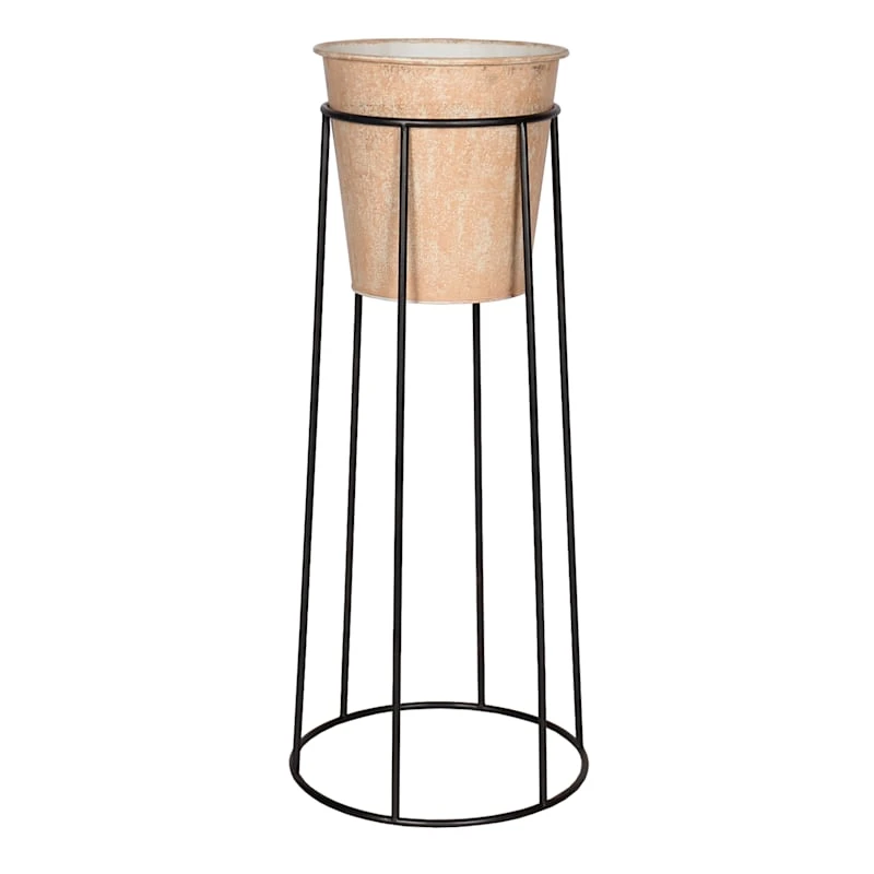 Modern farmhouse meets At Home prices in Honeybloom, our exclusive new brand that celebrates life lived together. Highlight your green thumb and showcase your annuals and perennials at your front door or add a touch of festive foliage to your deck with our stylish 29.5in. peach metal and a circular black wire metal stand. More than just a spot to display your gardening skills, this modern pot has a contemporary appearance with its wonderful elevated design. Created to live indoors or covered outdoors, it’s ready to make your plants pop.