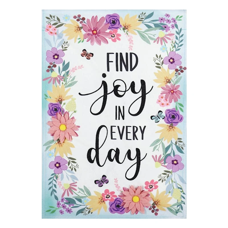 Welcome visitors into your home with our beautiful “Find joy in every day” floral garden flag. Featuring a colorful outdoor motif, this welcome sign is a great way to greet your guests. The wonderful multicolor floral and butterfly detailing is a nice pop to help get the warm days ahead started. This is the perfect spring or summer decoration to welcome in the new season and guests, too.