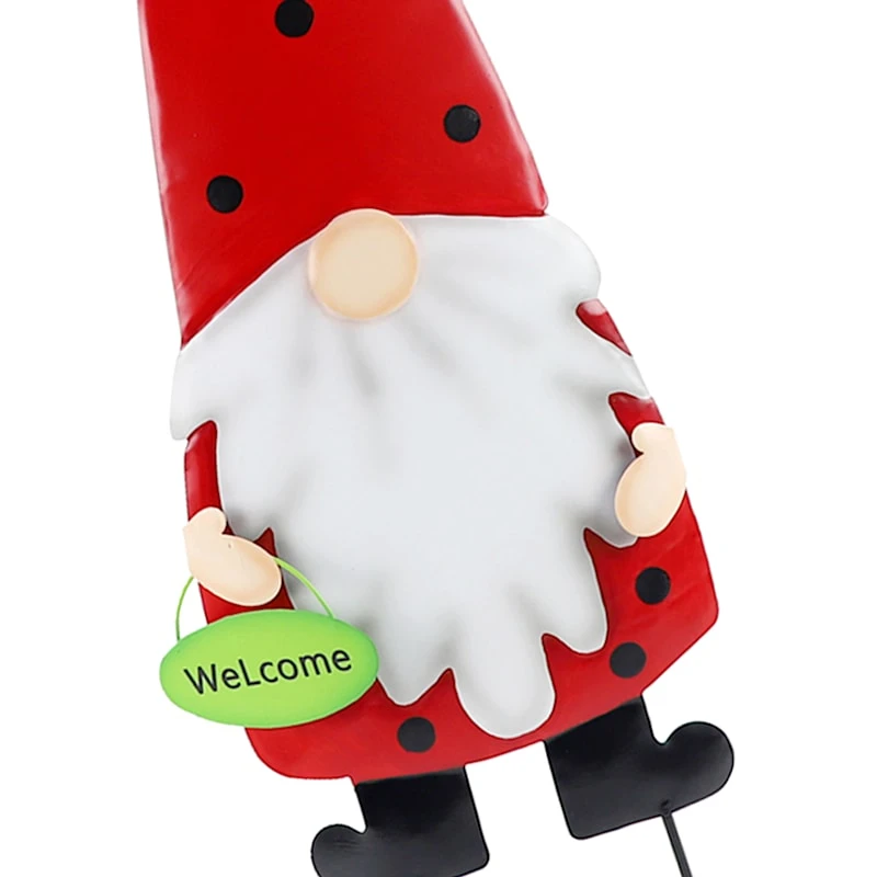Add a touch of whimsy to your yard with our colorful “Welcome” ladybug gnome garden stake. Created with love, this detailed metal decor features a double spike stand. Everyone will enjoy the charming gnome posing in your prolific garden. Made of rust-resistant metal.