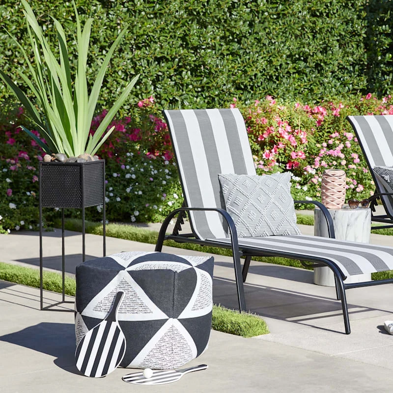 Be the first to review “Laila Ali Black & White Geometric Pouf, 17"” Cancel reply
