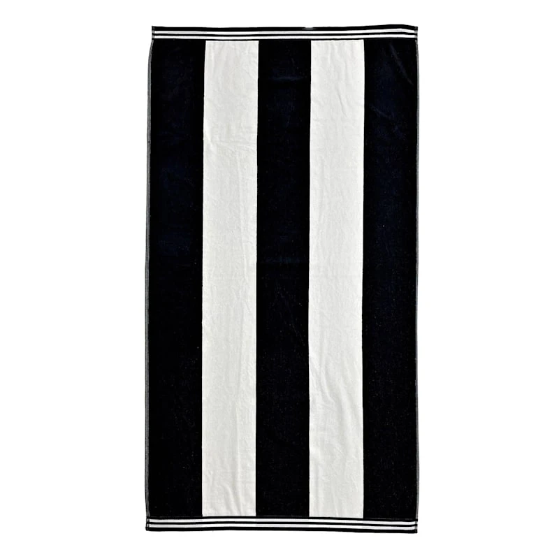Laila Ali brings the mindset of a world-champion athlete and passion for healthy living to create a modern lifestyle collection with serious style only found At Home. A collection that lets everyone relax in style. Polished finishes and classic hues pair with fun finds. This bold 100% cotton white and black Cabana stripe beach towel is the perfect choice when you want to wrap up in a comfort after a refreshing dip. The classic style, generous size and bold color palette make it the perfect choice for summertime fun.
