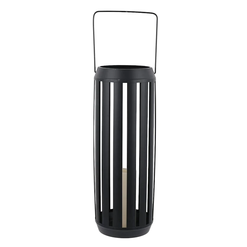 Laila Ali brings the mindset of a world-champion athlete and passion for healthy living to create a modern lifestyle collection with serious style only found At Home. Our black slat metal lantern features a unique tight stripe design that complements the candlelight inside. A realistic LED with gives the bulb a true shimmer for a light that warms any space, and the movable handle makes it easy to hang wherever you want some additional glow.