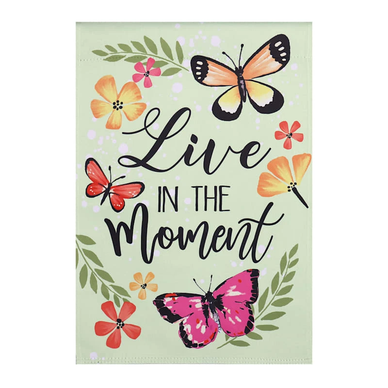 Welcome visitors into your home with our beautiful “Live in the moment” butterfly garden flag. Featuring a colorful outdoor motif, this welcome sign is a great way to greet your guests. The wonderful multicolor butterfly and floral detailing are a nice pop to help get the warm days ahead started. This is the perfect spring or summer decoration to welcome in the new season and guests, too.