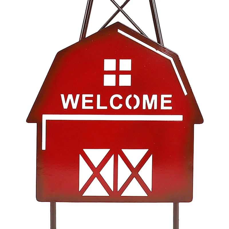 Featuring a cutout red barn, windmill motif and “welcome” sentiment, this garden stake is the perfect decor to beautify any garden. Crafted of red and white metal, this fun little sign will bring joy for years to come.