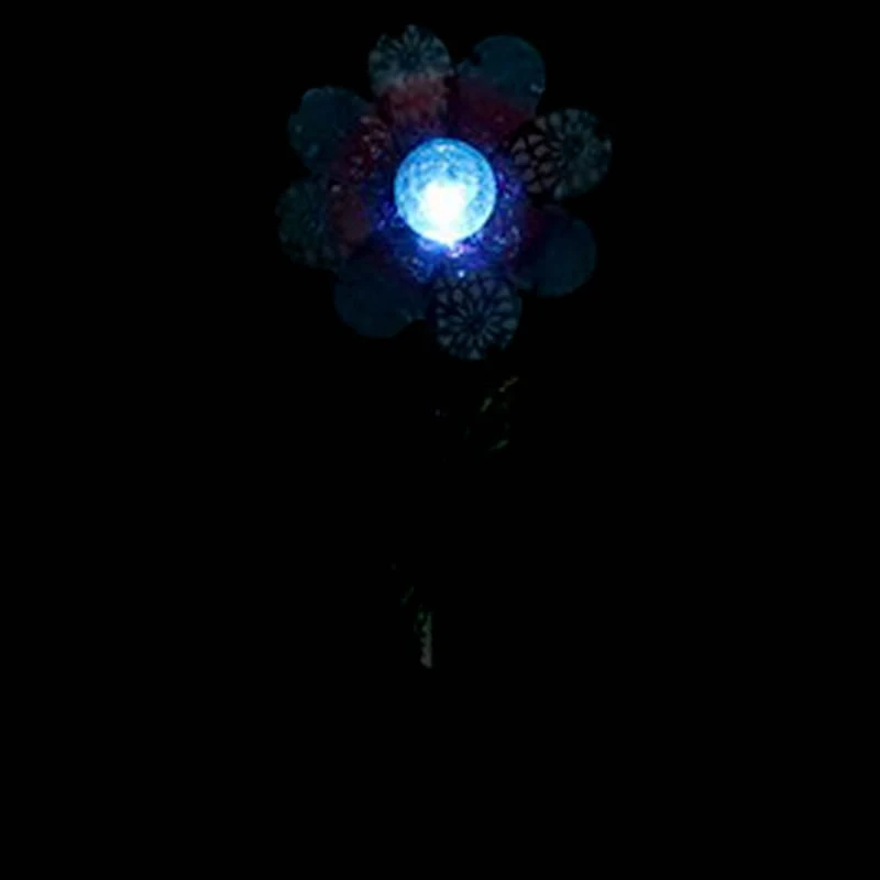 Always in bloom, our blue and pink metal cutout flower garden stake is a real beauty. This gorgeous solar-powered light will automatically illuminate your outdoor space at dusk, bringing your garden warmth and charm all year long. Makes a wonderful gift for the avid gardener.