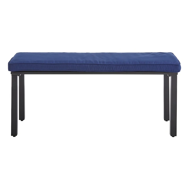 Our outdoor cushions are durable and ready to stand up to the elements. Polyester construction and all-weather capability make canvas navy bench cushion set a must-have for outdoor entertaining. With the basic design and corner ties, you can create a stunning patio, porch or deck that will be the talk of the neighborhood. Check our overall selection for a variety of shapes, sizes, patterns and colors to fit the personality of your patio.
