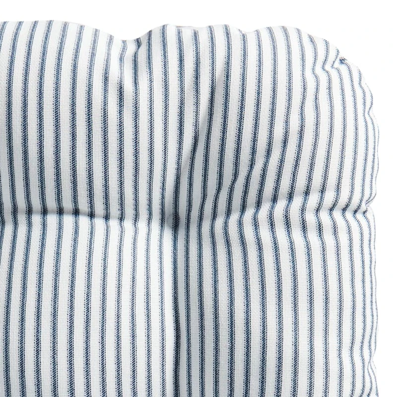 Our outdoor cushions are durable and ready to stand up to the elements. Polyester construction and all-weather capability make this Navy Blue Ticking Striped Outdoor Wicker Seat Cushion a must-have for outdoor entertaining. Create a stunning patio, porch or deck that will be the talk of the neighborhood. Check our overall selection for a variety of shapes, sizes, patterns and colors to fit the personality of your patio.