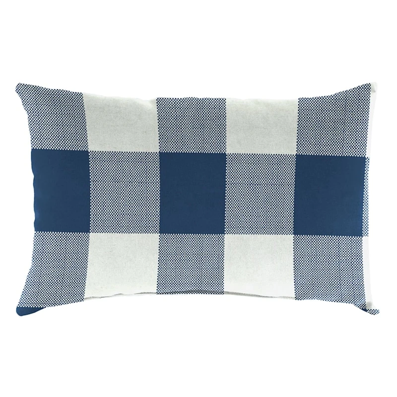 Our outdoor pillows are durable and ready to stand up to the elements. Polyester construction and all-weather capability make this 14x20in navy buffalo plaid lumbar throw pillow is a must-have for outdoor entertaining. With the fashion-forward color, you can create a stunning patio, porch or deck that will be the talk of the neighborhood. Check our overall selection for a variety of shapes, sizes, patterns and colors to fit the personality of your patio.