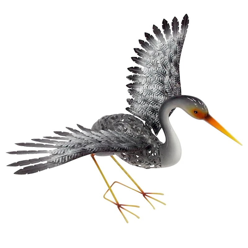 Round out your indoor or outdoor decor�s visual appeal with our water crane with folding wings, crafted of grey, silver and black metal and showcasing a majestic crane in flight with its head down. This piece�s architectural details add a pop of pattern to your look, while the design�s interesting patina blends effortlessly into any color palette. Set this piece inside or out and it�ll round out your space with wonderful coordinating decor.