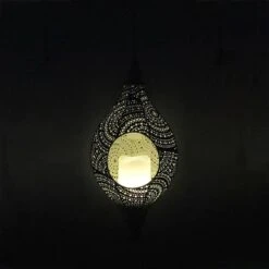 Found & Fable LED White Metal Hanging Solar Punch Lantern, 17"