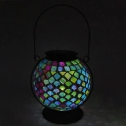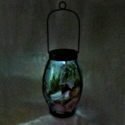 Hummingbird Scene Glass Solar Lantern With Metal Handle, 9.5"