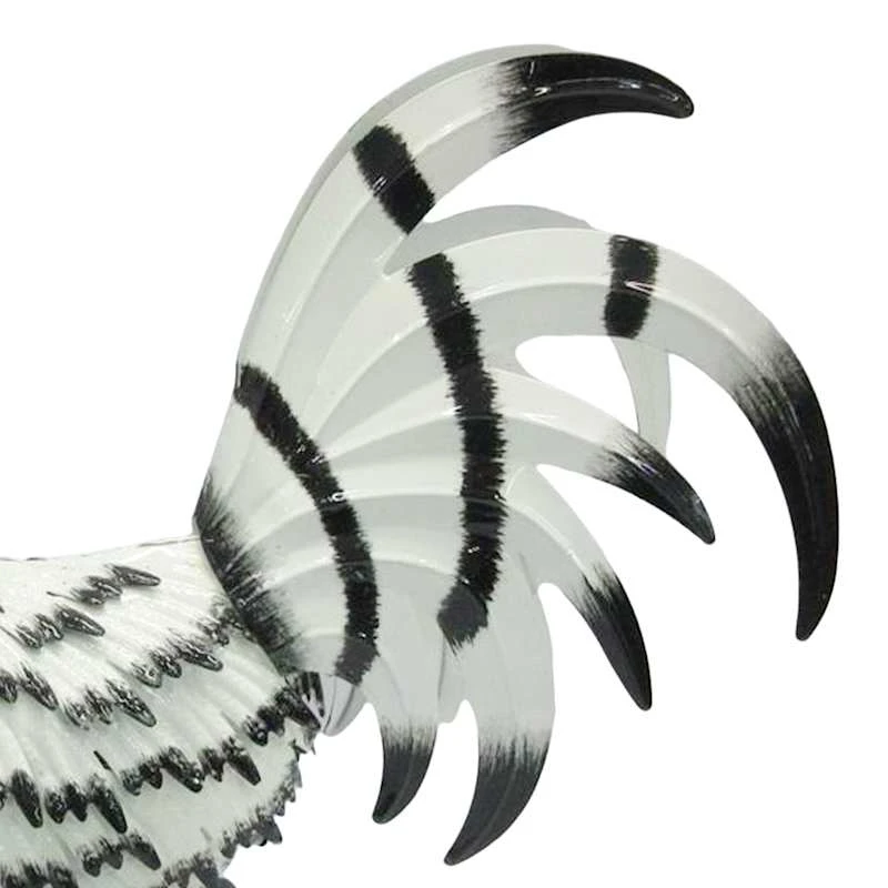 Bright and bold, our black, white and red Sussex rooster will welcome every day with true enthusiasm. The eye-catching metal bird is the perfect addition to summer gardens, and he works well indoors, too. This sculpture figurine is crafted of sheet metal and meticulously painted to resemble this spectacular barnyard staple.