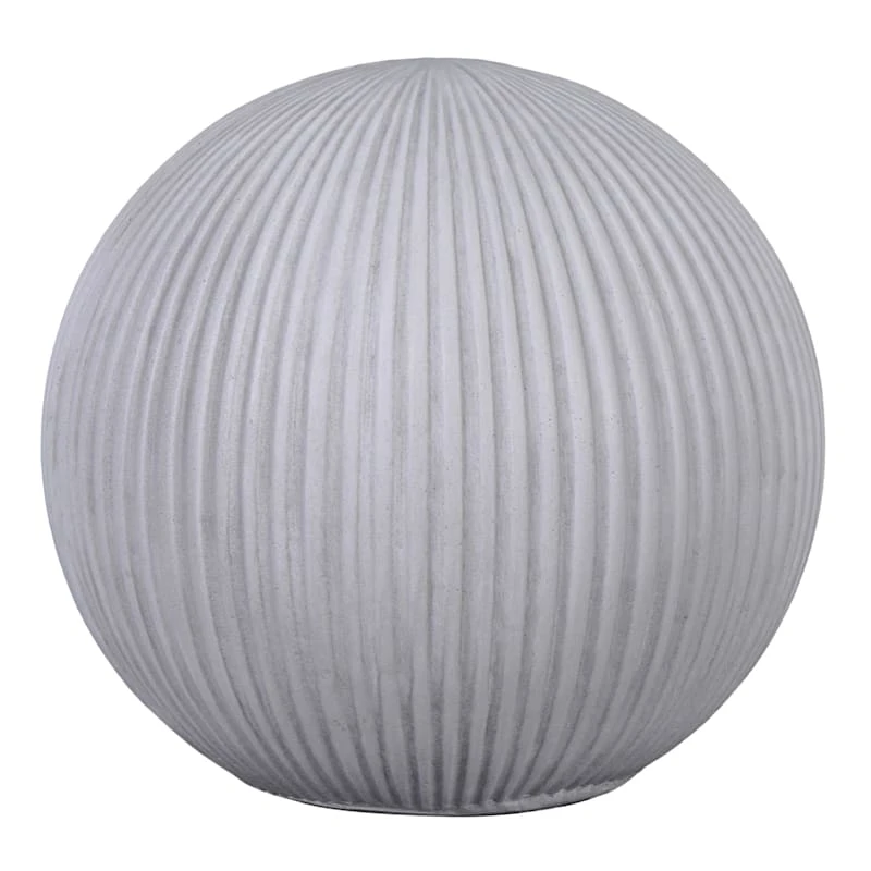 Place our charming ribbed 10in. Salem gray synthetic sphere on a covered deck and have an instant global vibe. Ribbed detailing wraps the globe and gives it a sense of motion. A true finish to your natural home decorating style, this sphere will look wonderful in any indoor garden.