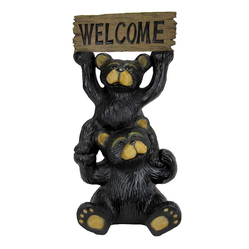 Uniquely designed like a couple of special garden visitors, our resin bears �Welcome� figurine combines simplicity with nature. The realistic painted finish makes this sweet statue the perfect addition to any garden setting. It�s easy to place in your gardenscape or patio and is easily going to be one of your favorite outdoor pieces.