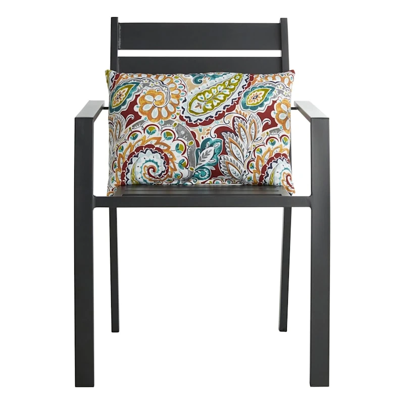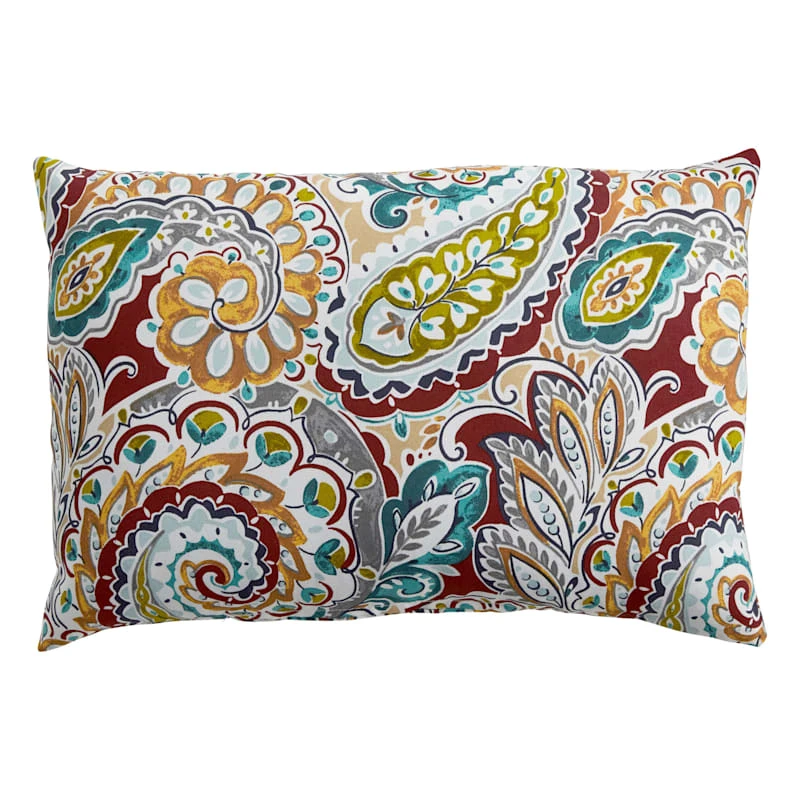 Our outdoor pillows are durable and ready to stand up to the elements. Polyester construction and all-weather capability make this 14x20in paisley chili outdoor lumbar throw pillow is a must-have for outdoor entertaining. With the fashion-forward color, you can create a stunning patio, porch or deck that will be the talk of the neighborhood. Check our overall selection for a variety of shapes, sizes, patterns and colors to fit the personality of your patio.