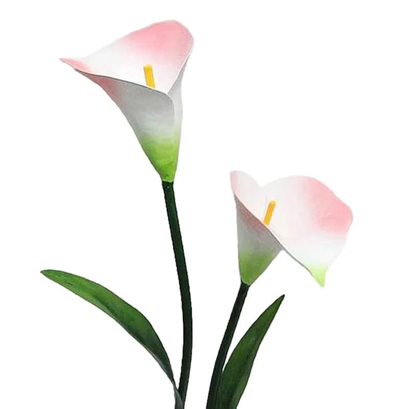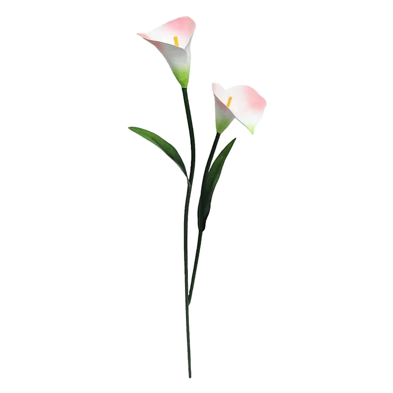 Add a pinch of fun to your garden with our colorful metal 32in. multicolor calla lily garden stake. Created with love, this detailed metal piece features a dual pointed spike base with a detailed double lily and leaf design. Everyone will enjoy the charming subject matter tucked into your prolific garden. Made of painted white, pink, and green rust-resistant metal, this garden stake is designed to bring a natural touch to your landscaping.
