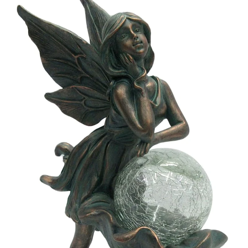 Our resin LED lighted garden fairy statue is the perfect garden decoration for landscape lovers. This unique metallic-look outdoor decor piece features a fanciful fairy ready to stand guard in your garden. With the wonderful details, this figurine adds a touch of personality to any outdoor space.