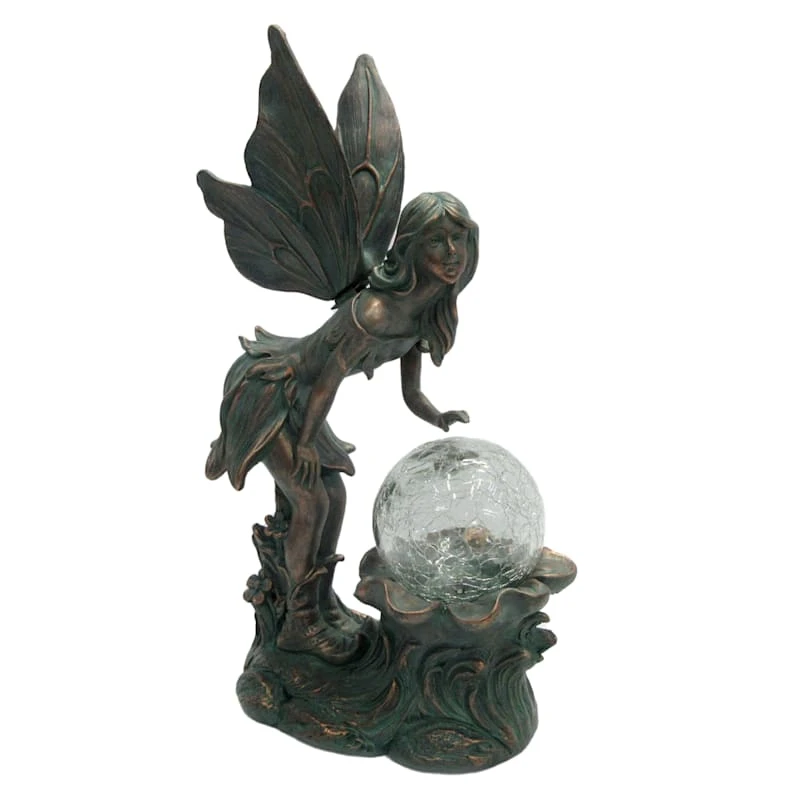 Our resin LED lighted garden fairy statue is the perfect garden decoration for landscape lovers. This unique metallic-look outdoor decor piece features a fanciful fairy ready to stand guard in your garden. With the wonderful details, this figurine adds a touch of personality to any outdoor space.