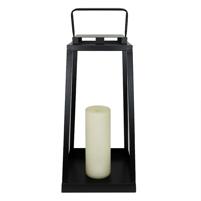 A collection that lets everyone relax in style. Polished finishes and classic hues pair with fun finds. Providence is where elegant settings still feel comfortable and warm—exclusively At Home. This 24in. refreshing classic metal LED lantern is the perfect addition to any home decor, inside or out. The flickering LED pillar candle lamp lights from within and adds to the overall ambience. The flexible handle makes it easy to hang from any hook, or it can also be set on the hearth, bookshelf or on the patio table, too.