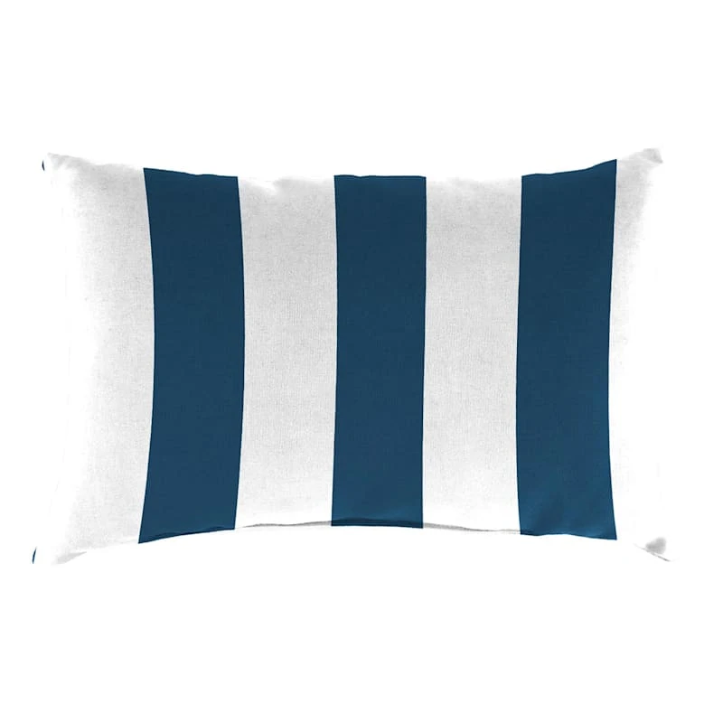 A collection that lets everyone relax in style. Polished finishes and classic hues pair with fun finds. Providence is where elegant settings still feel comfortable and warm—exclusively At Home. Our outdoor cushions are durable and ready to stand up to the elements. Polyester construction and all-weather capability make this navy blue awning stripe 14x20in. lumbar throw pillow is a must-have for outdoor entertaining. With the fashion-forward navy blue and white design, you can create a stunning patio, porch or deck that will be the talk of the neighborhood. Check our overall selection for a variety of shapes, sizes, patterns and colors to fit the personality of your patio.