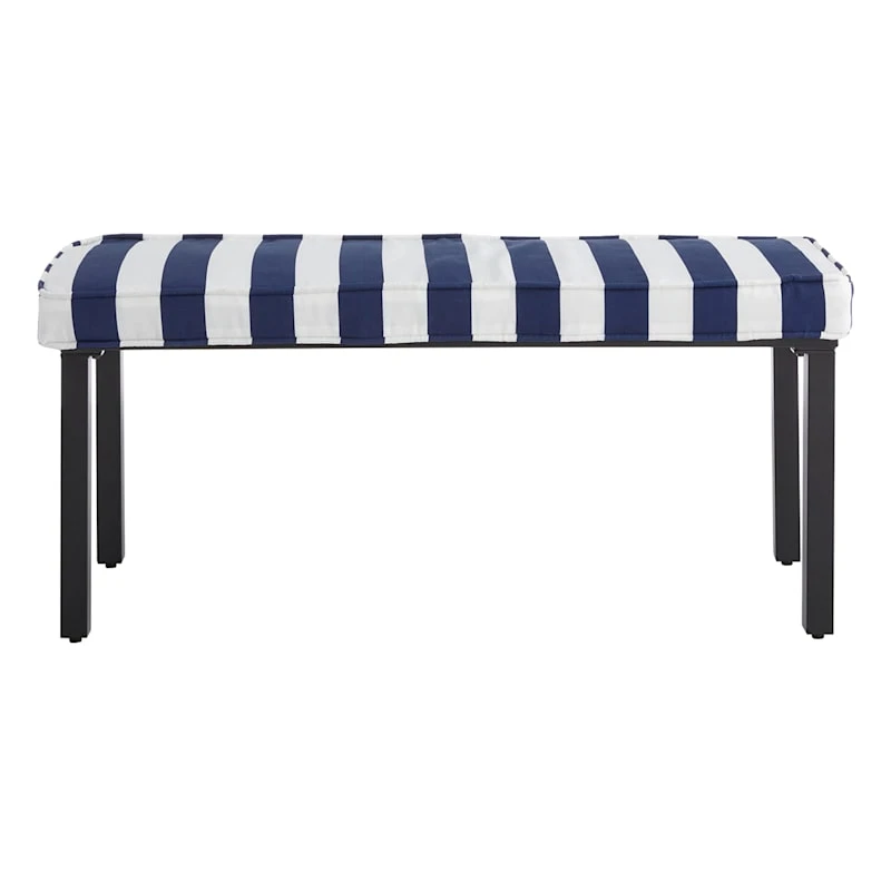 A collection that lets everyone relax in style. Polished finishes and classic hues pair with fun finds. Providence is where elegant settings still feel comfortable and warm—exclusively At Home. Our outdoor cushions are durable and ready to stand up to the elements. Polyester construction and all-weather capability make this navy blue awning stripe gusseted bench cushion is a must-have for outdoor entertaining. With the fashion-forward navy blue and white design, you can create a stunning patio, porch or deck that will be the talk of the neighborhood. Check our overall selection for a variety of shapes, sizes, patterns and colors to fit the personality of your patio.