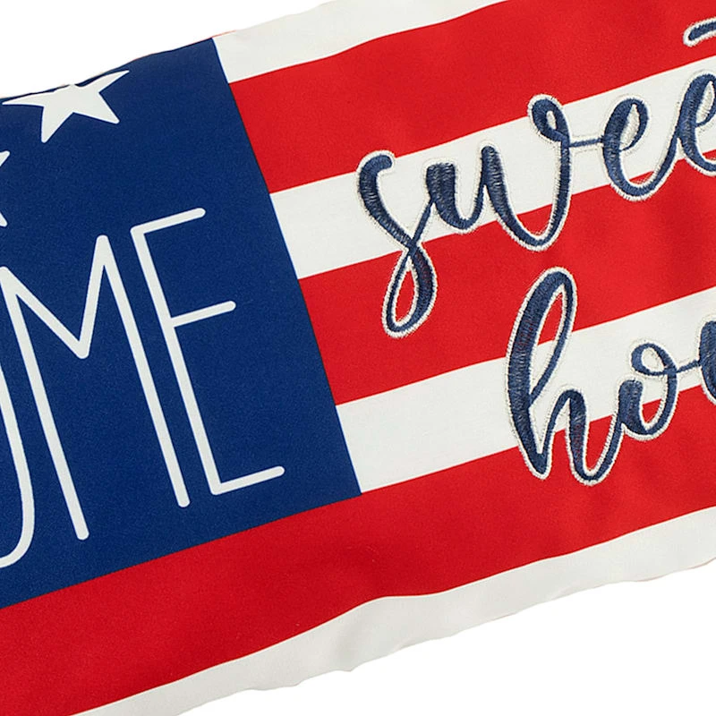 A collection that lets everyone relax in style. Polished finishes and classic hues pair with fun finds. Providence is where elegant settings still feel comfortable and warm—exclusively At Home. Our outdoor pillows are durable and ready to stand up to the elements. Polyester construction and all-weather capability make this 13x20in. patriotic “Home” flag throw pillow is a must-have for outdoor entertaining. With the fashion-forward red, white and blue design, you can create a stunning patio, porch or deck that will be the talk of the neighborhood. Check our overall selection for a variety of shapes, sizes, patterns and colors to fit the personality of your patio.