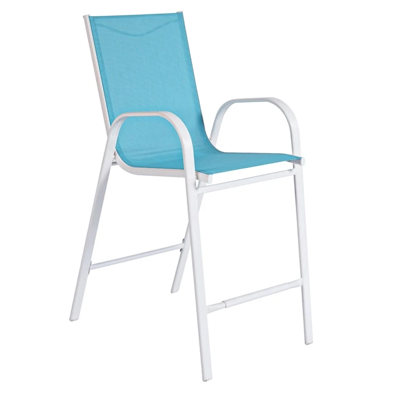 Escape the indoors and get outdoors with our stackable aquarelle blue Sling patio barstool. Buy in multiples and be sure to have enough outdoor seating for family and friends. This outdoor metal dining chair features a simple streamlined look with a metal frame and a comfortable mesh fabric that’s breathable. These stacking chairs will last even longer if protected from the elements. Pair with any patio table or garden stool and enjoy the great outdoors to the fullest.
